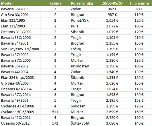 Last minute charter ponuda jedrilica za iduću subotu
