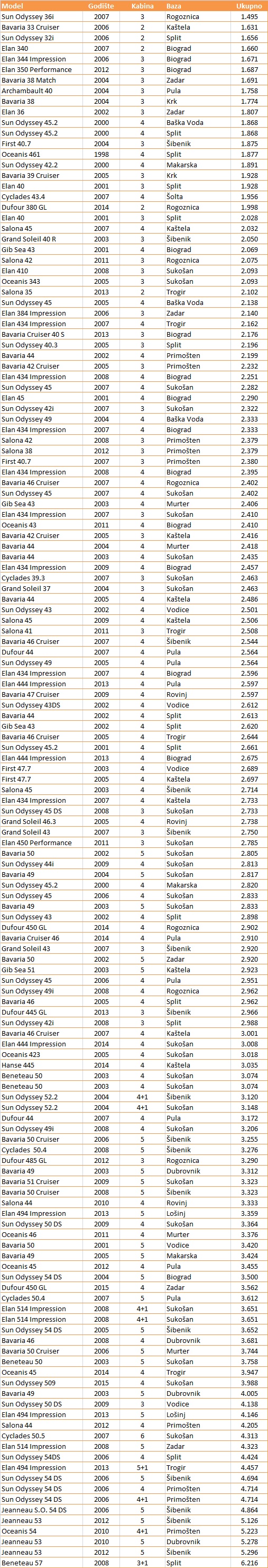 Charter ponuda za sljedeći tjedan - 01.08.2015.-08.08.2015.