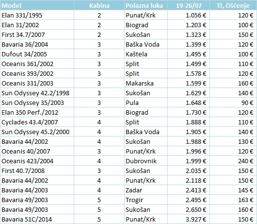 - u većini slučajeva ne možete birati model plovila tj. birate između još raspoloživih plovila isto vrijedi i za polaznu luku
