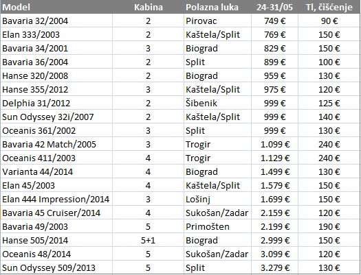 Macrocruise izbor jedrilica za last minute charter u terminu 24-31/05: