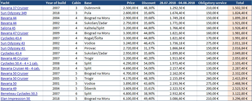 Izbor jedrilica iz ponude za 28/07-04/08: