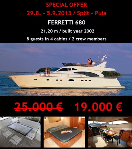 Cijene u ponudi su izražene u eurima. Za plaćanje u kunama se obračunava prema srednjem tečaju HNBa na dan uplate. Transit log i završno čišćenje se plaćaju prilikom dolaska na plovilo osoblju charter baze. Osim toga, potrebno je platiti boravišnu pristojbu 7 kuna/po danu/po osobi. Sigurnosni depozit se može se položiti u slipovima kreditnih kartica ili u gotovini.