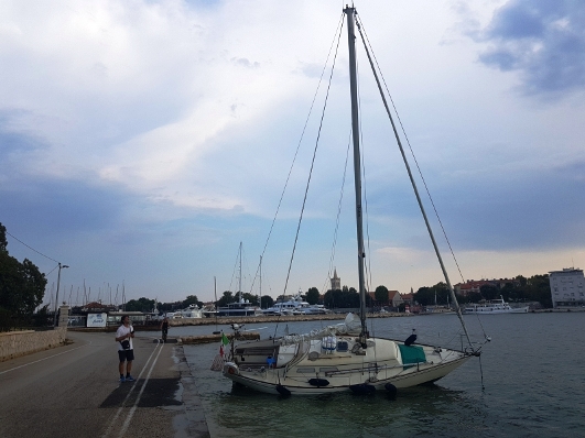 Nasuprot Maraskine zgrade, na Obali kneza Trpimira, u plićaku se nasukala jedrilica.