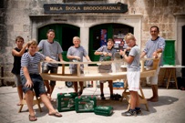 U srcu Korčule, među starim gradskim zidinama, smjestila se Mala škola brodogradnje, improvizirani škver na glavnom gradskom trgu. Pred očima znatiželjnih turista, slučajnih prolaznika i onih upućenih u život na Mediteranu, u samo nekoliko dana, mali su Korčulani, pod stručnim vodstvom Davora Mihalića i Emira Arnautovića, sagradili barku, u skladu sa zakonima tradicionalnih brodograditelja. Kako svaki brod puni smisao dobiva tek u susretu s morem, i ova će brodica oživjeti s porinućem 27. srpnja, a mali brodograditelji bit će prvi njezini putnici.