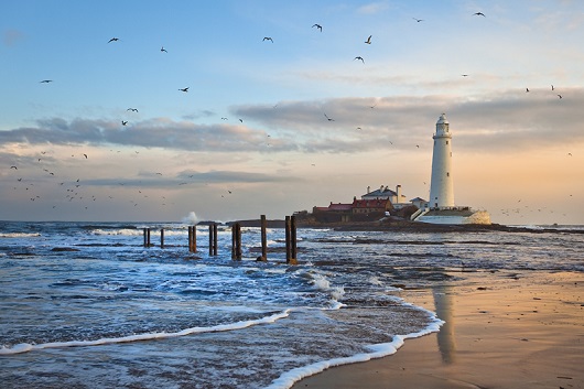 Smješten na malom otoku Sv. Marije na obali sjeveroistočne Engleske, svjetionik Sv. Marije izgrađen je 1898. godine od 645 kamenih blokova i 750.000 kockica, na mjestu samostana te je služio kao vodič za prolazak brodova. Na početku je bio osvjetljen parafinskim parama, a 1977. je dobio električnu rasvjetu. Svjetioničareva kuća bila je uz toranj, izgrađena od kamena i povezana natkrivenim prolazom. Iako više nije u funkciji, St. Mary's Lighthouse ima centar za posjetitelje, muzej i kafić za umorne turiste.