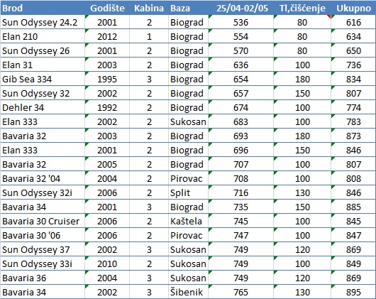 Izbor najpovoljnijih brodova za tjedni termin koji uključuje i 01.05.2015. - Praznik rada: