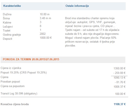Najpovoljniji trokabinac za termin 20.06.2015-27.06.2015