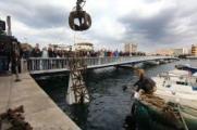 Roniocima je mulj otežavao posao i loše su vidjeli što rade, no ipak su uspjeli. Prvi pokušaj prekinut je nakon što je dizalica debelo iz mora izvukla dio ograde nekadašnjeg mosta, no uskoro se taj dio, viseći u zraku, raspao na komadiće i pao natrag u more. Donijeli su tada željeznu konstrukciju stola, potopili je u more, na nju privezali dio ograde i izvukli ga na sigurno. Iako je bilo najavljeno, ronioci iz mora nisu izvukli mehanizam kojim se most nekad otvarao.