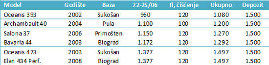 Aktualna lista brodova koji su rasploživi za ovaj produženi vikend 22-25/06: