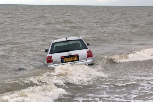 Vlasnik ovog Audija A6 poprilično se precijenio kada je automobil parkirao na plažu. Kroz nekoliko sati podigla se visoka plima, uobičajena za Veliku Britaniju, te vozilo povukla u morske dubine.