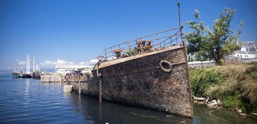 U tijeku je čišćenje oplate trupa od školjaka i gustih naslaga morske trave, te pripreme za tegalj „Istranke" u ribarsku luku u obližnjim Brižinama gdje bi konačno bila izvučena na suho.