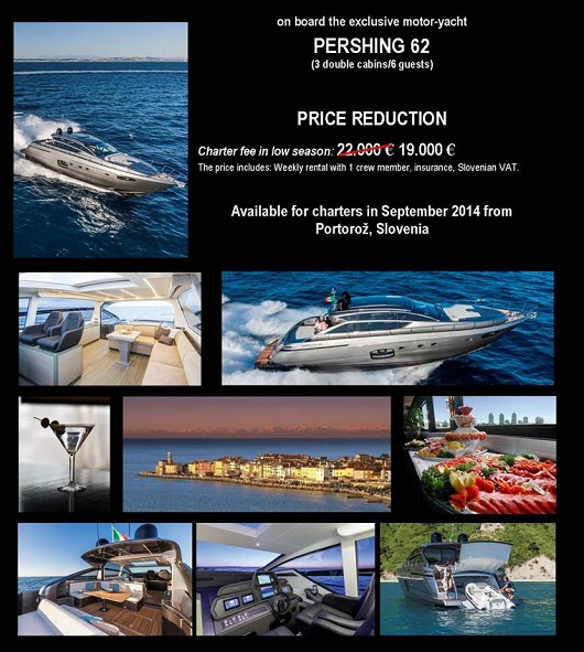 Cijene u ponudi su izražene u eurima. Plaćanje u kunama obračunava se prema srednjem tečaju HNB-a na dan uplate. Transit log i završno čišćenje plaćaju se prilikom dolaska na plovilo osoblju charter baze. Osim toga, potrebno je platiti boravišnu pristojbu 7 kuna/po danu/po osobi. Sigurnosni depozit može se položiti u slipovima kreditnih kartica ili u gotovini.