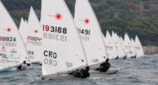 Jako jugo i dugi visoki val bio je priličan izazov prvog dana Otvorenog Prvenstva Hrvatske za olimpijske klase. Jutro je osvanulo s kišom i slabim vjetrom i nikome se od 112 natjecatelja iz 12 zemalja nije previše žurilo na more. Srećom, kiša je prestala padati, jugo se raspuhalo i regatni odbor je oko 12 sati flotu pozvao na more.