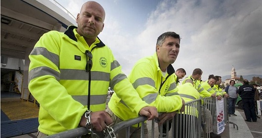 Interventna policija udaljila radnike Trajektne luke koji su vezanjem lancem za ogradu pokušali blokirati isplovljavanje trajekta za Hvar