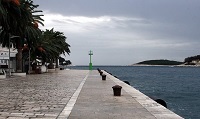 Hvarska riva pod udarima juga je bila potpuno prazna. Na toj rivi u sezoni se računa koliko milijuna eura po metru dužine je privezano, a za slobodan vez se zove tjednima unaprijed. Sada su uz rivu usidrena tek tri veća tradicionalna ribarska leuta i jedan gumenjak. Hvarani su se povukli po kućama, sreli smo samo nekoliko ljudi u lokalnom kafiću koji je radio, na televiziji su bili teletekst izvještaji iz kladionica, a gosti su raspravljali o sportu, ali i o hobotnicama, lignjama i ulovu.