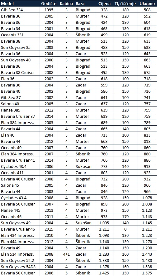 Ponuda raspoloživih brodova za produženi vikend - Praznik rada iz akvatorij Kornata.