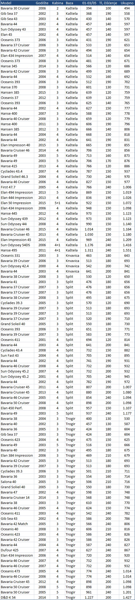Ponuda raspoloživih brodova za produženi vikend - Praznik rada iz akvatorija Splita i okolice.
