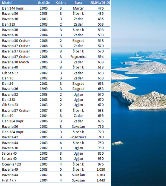 Ponuda se odnosu na boravak na plovilu od subote (28.04.) do utorka (01.05.).