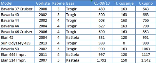 Charter ponuda jedrilica za termin 05-08/10 iz Splita i okolice