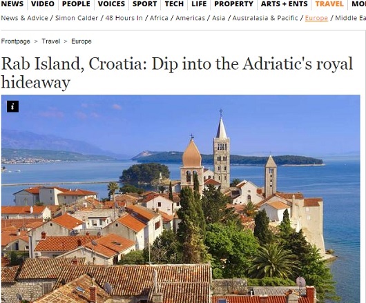 Cijenjeni londonski Independent objavio je reportažu s Raba kakvu bi teško bolje sročili i rapski marketinški stručnjaci. Pod naslovom »Otok Rab, Hrvatska: umočite se u jadransko kraljevsko utočište«, novinarka Linda Cookson napisala je odu Rabu, garniranu inspiriranim izrazima kakve ne poznaje ni »Google translate«.