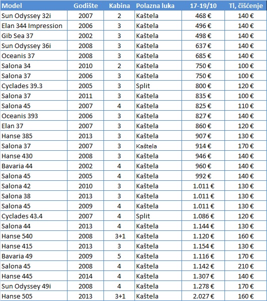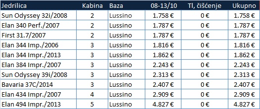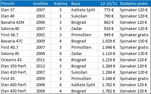 Charter ponuda za regatu Jabuka 2014 - termin iz ponude 12-15/11