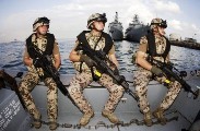 Brodarskim kompanijama se dopušta da na svoj trošak ukrcaju naoružanu pratnju na brod kako bi se zaštitilo prvenstveno posadu, ali i brod i teret, i to u područjima gdje je rizik od napada ili pljačke povećan.