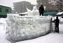 Četvorica mladića iz mjesta Yuksekova, nedaleko od turske istočne pokrajine Hakkari, nakon četverodnevnog napornog rada napravili su deset metara dug brod od snijega.
