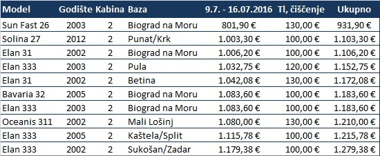 Top 50 - najpovoljnije jedrenje u srpnju 2016