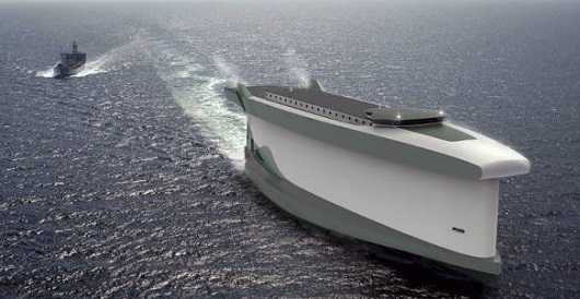 Tvrtka Lade AS iz Osla, u kojoj je osmišljen ovaj koncept, kaže da bi ovakav hibridni trgovački brod - koji bi trebao imati motore s pogonom na ukapljeni plin (LNG) - mogao postići uštedu goriva od 60% i smanjiti emisije ugljičnog dioksida za 80%.