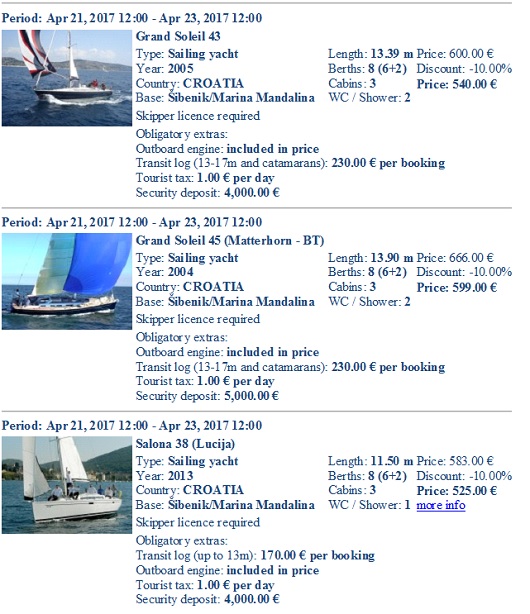 Ponuda vrijedi za termin: dolazak na plovilo u petak (21. 4.) - povratak u nedjelju 23. 4.
