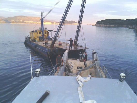 Pri kraju je intervencija tegljenja broda koji je jučer bio potopljen kraj Kalamote. Dubrovački vatrogasci i DVD Koločep zajedničkim su snagama najprije ispumpali brod Sv. Kuzma koji je prevozio pijesak, a potom ga je i ploveća dizalicaTriton počeo tegliti uz pomoć specijaliziranog pomorskog servisa za pomoć vađenja unesrećenih plovila. Sv. Kuzma uspješno je otegljen u Rijeku dubrovačku, a na Kalamoti nije bilo onečišćenja mora.