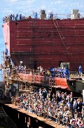 U "3. maju" je porinut trenutno najveći asfalt tanker na svijetu s dva neovisna tanka za prijevoz asfalta na temperaturi od 250 Celzijusa.