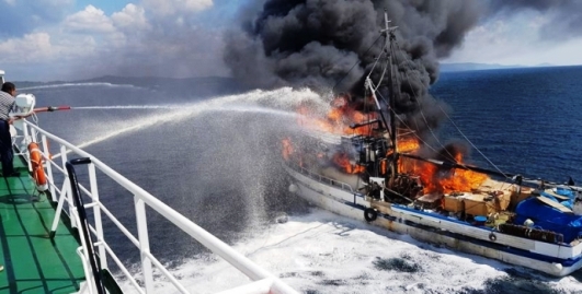 Brod Fulija Kali tune, pomogla je i u teglenju broda, kojega su, nakon što je požar ugašen, oteglili u uvalu Lamjana gdje će se obaviti očevid.