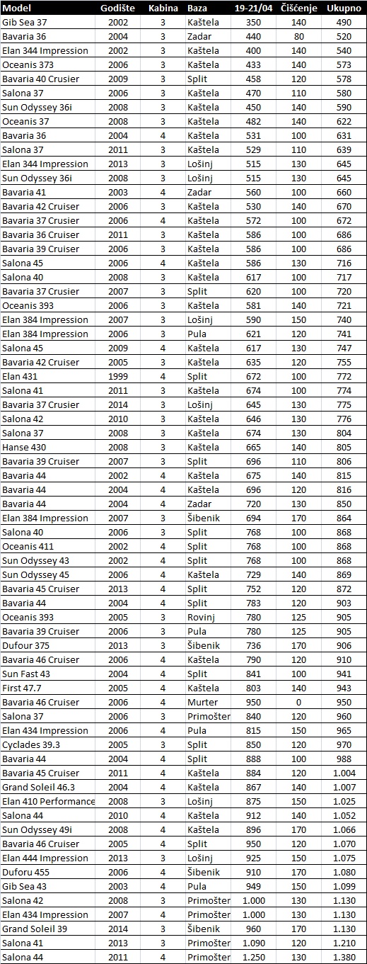 Macrocruise charter ponuda za uskršnje blagdane uključuje tri dana subota-nedjelja-ponedjeljak, 19-21/04. Ponuda za jedrilica s 3 i 4 kabine: