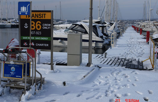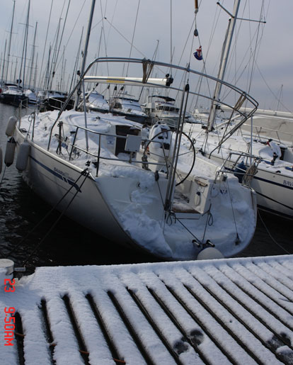 Marina Punat u vrijeme Uskrsa 2007 i isti brod koji je na gornjoj slici pod snijegom: