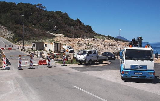 U tijeku je popravak pokretnog mosta, te se promet privremeno odvija preko užeg mosta, postavljenog nekoliko metara dalje. Kako na privremenom mostu nema prostora za istodobni prelazak iz oba smjera, promet je reguliran semaforom.